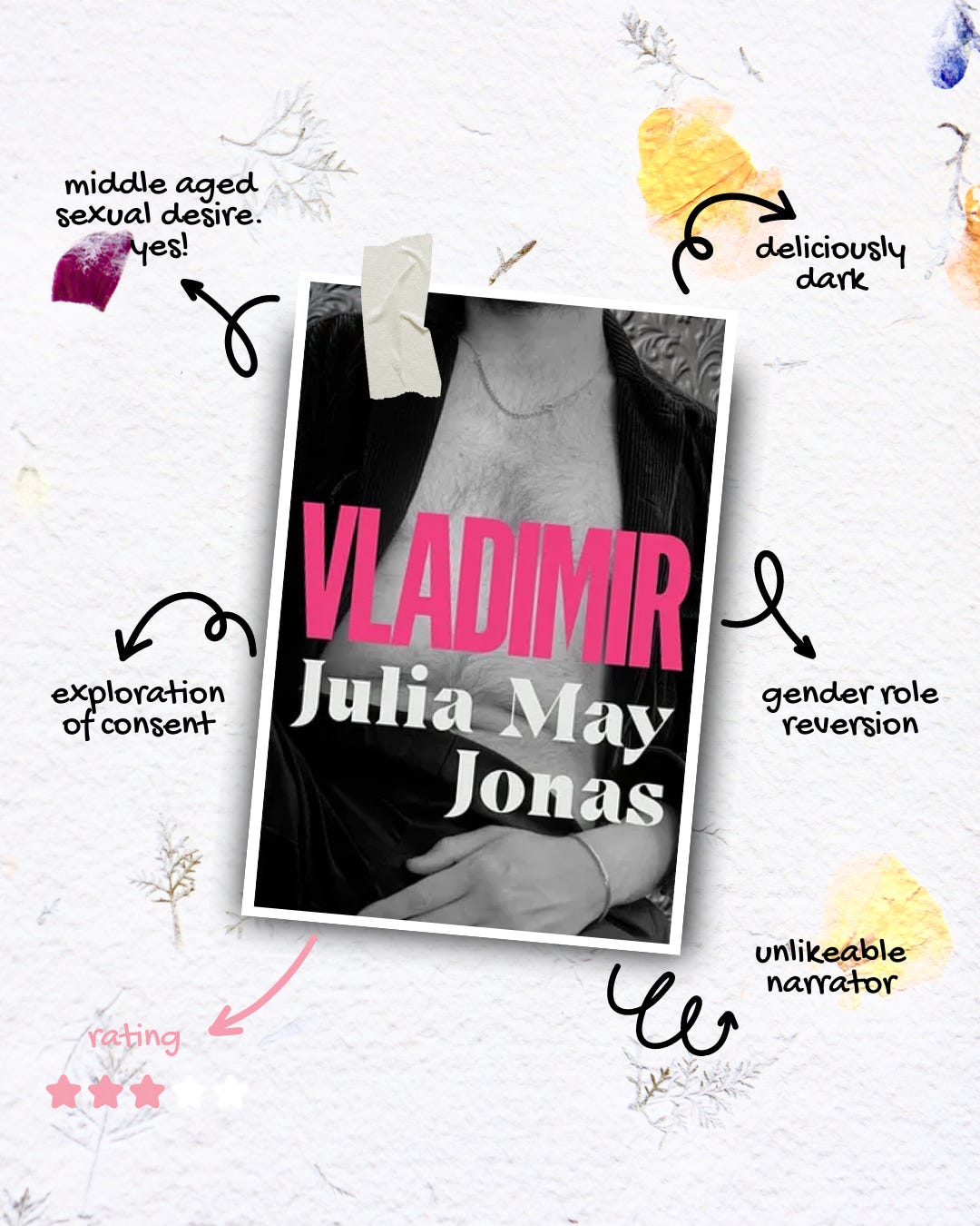Oh Vladimir. Sexy, sultry Vladimir. You were so nearly perfect. Our unnamed narrator is horny, unlikeable, obsessive, did I say horny? And best of all, she’s middle aged, in an open marriage and, to make it all the more fun, has questionable boundaries. I loved Vladimir’s exploration of middle aged sexual desire and I’m so glad we’re living in an age of unlikeable (horny) female narrators. This was such a perfect character study, not just of our narrator, but also her husband and the (actually kinda scarce) titular character. But THAT ending. I just couldn’t get over it. WHY!? Please, if someone has read this book, tell me why that ending is in anyway fitting so I can give this 5 stars. Because until the last few pages I thought this was fantastic!